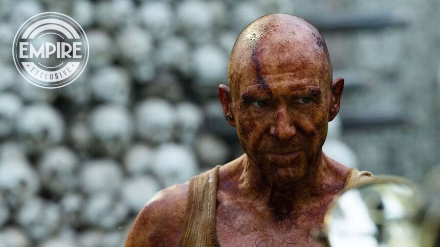 O personagem de Fiennes tem uma aparência austera, rosto ensanguentado e estrutura esquelética, deixando em aberto para interpretação sobre suas verdadeiras intenções. Veja abaixo: